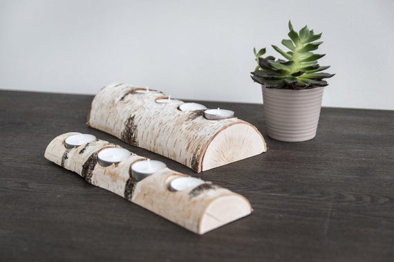 Birch Wood Candle Holder Rustic Wedding Decor Home Decor Etsy