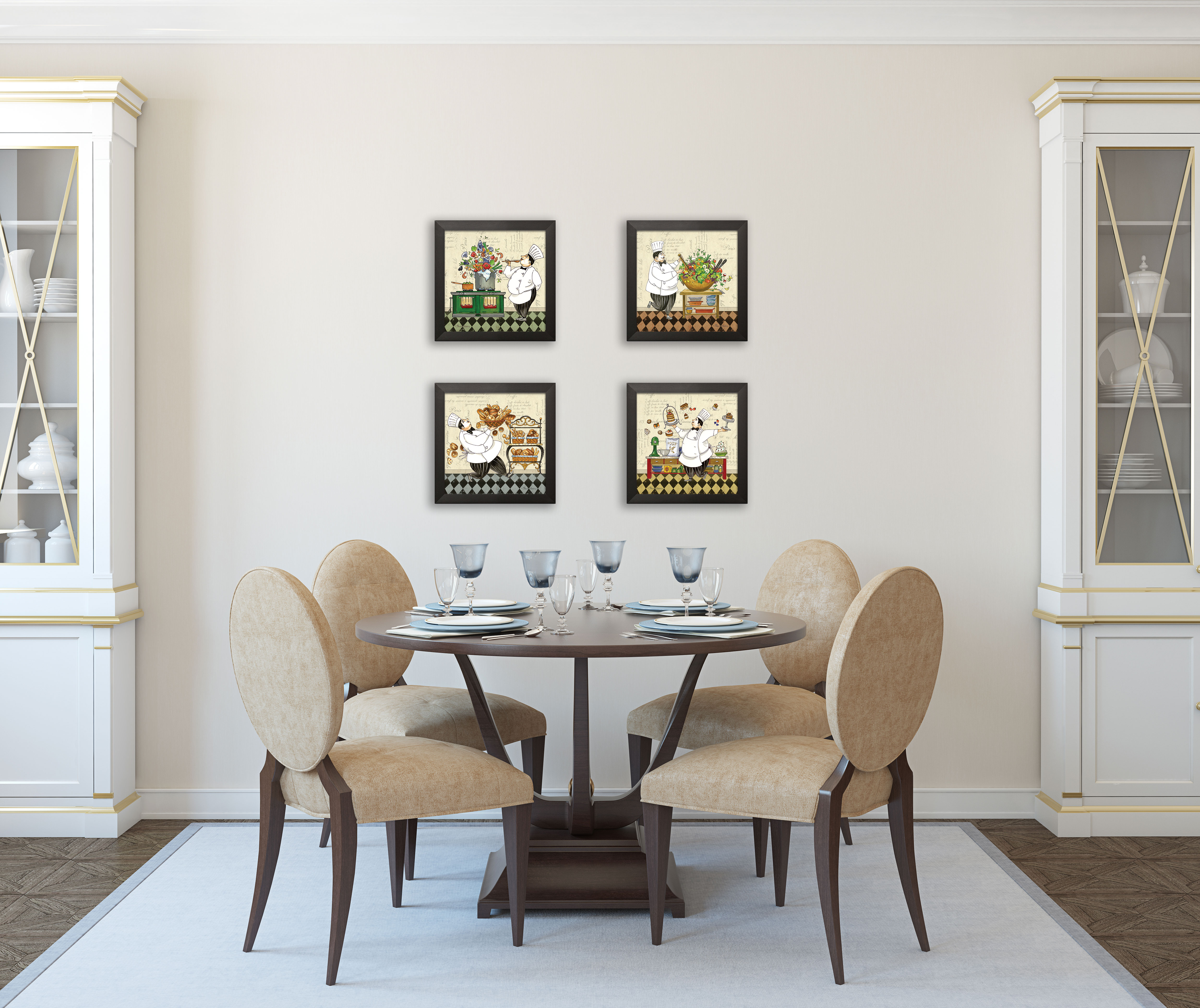 Gango Home Decor Happy French Chef Set Kitchen Decor Four 8x10in