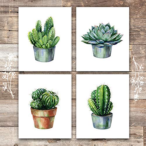 Amazon Com Cactus Decor Art Prints Set Of 4 Unframed 8x10s