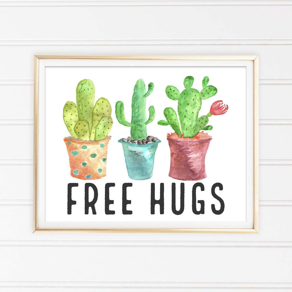 Bestofbharat Watercolor Print Free Hugs Cactus Decor Watercolor