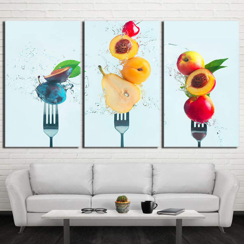 Fruits On Fork Canvas Wall Art Print For Cafe And Kitchen Decor Ebay