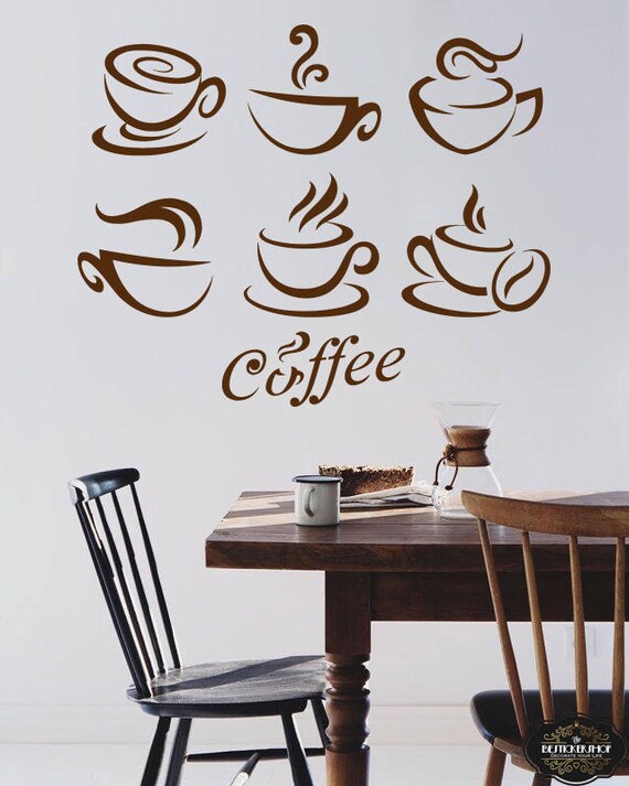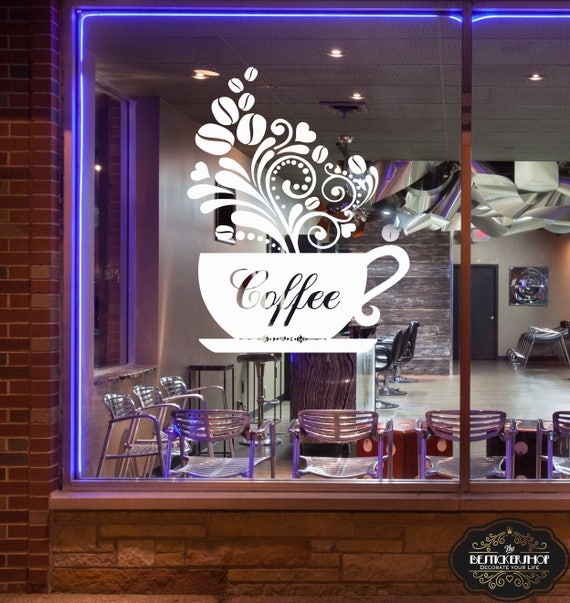 Wall Window Decal Sticker Coffee Cup Beans Cafe Kitchen Decor Etsy