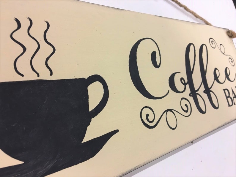 Coffee Bar Painted Cafe Kitchen Decor Wooden Wall Art Sign Etsy