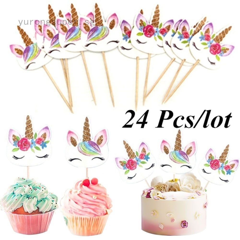 24 Cake Decorating Insert Card Pick Unicorn Cartoon Cupcake