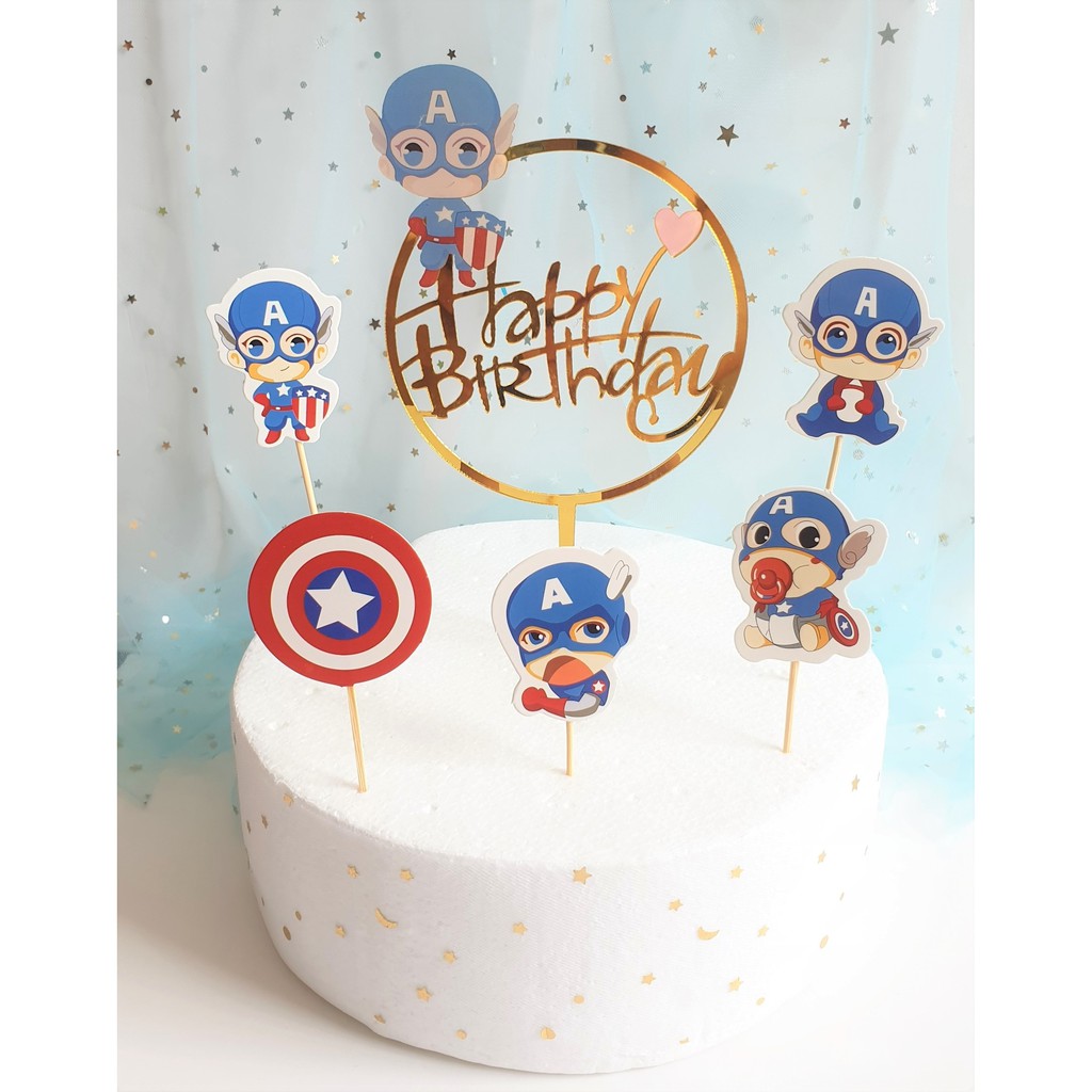 Birthday Banner Captain America Cake Topper Cake Decoration Party
