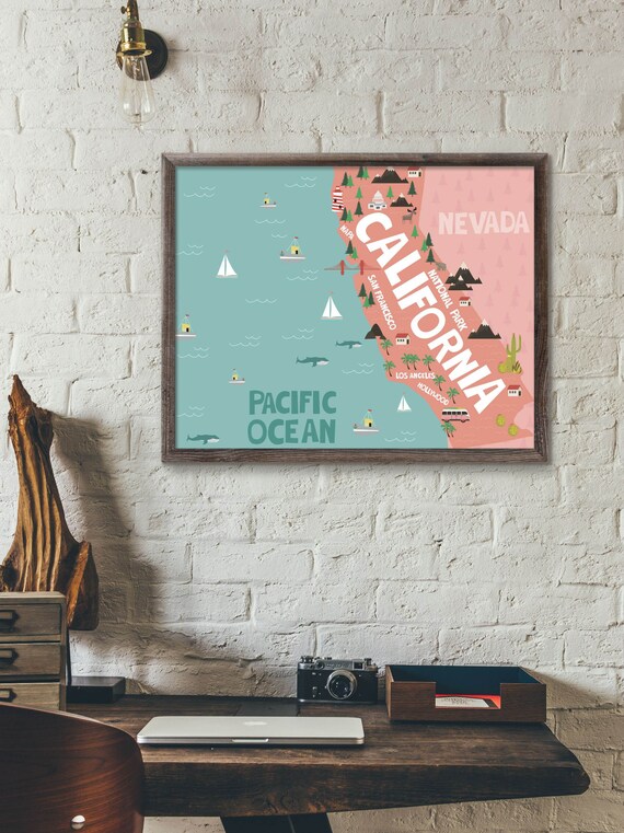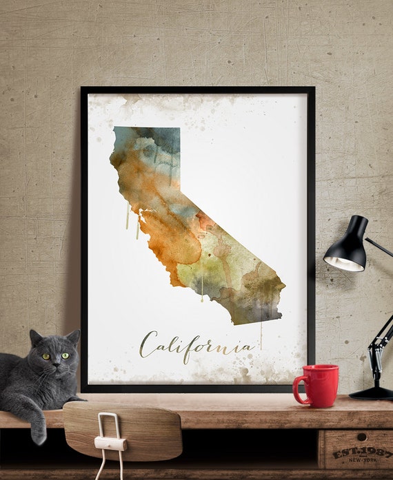 Home Decor Wall Art Watercolor California Black And White Etsy