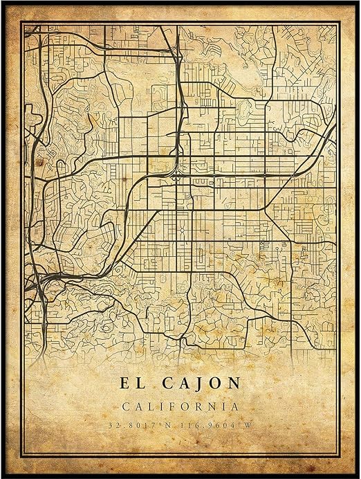 Amazon Com El Cajon Map Vintage Style Poster Print Old City