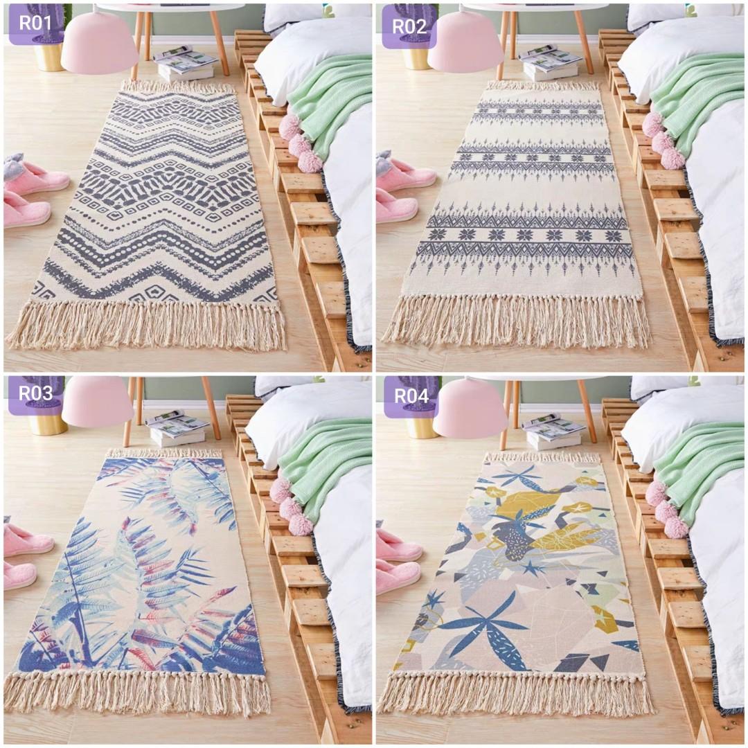 Bohemian Tribal Motifs Woven Cotton Tassel Rug Home Decor