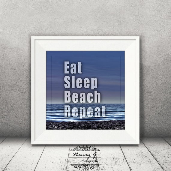 Beach Decor Eat Sleep Beach Repeat Square Print Marine Etsy
