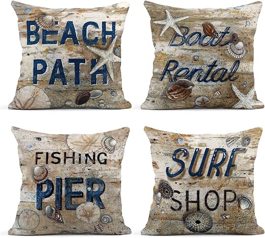 Amazon Com Tarolo Set Of 4 Linen Throw Pillow Cover Case Beach