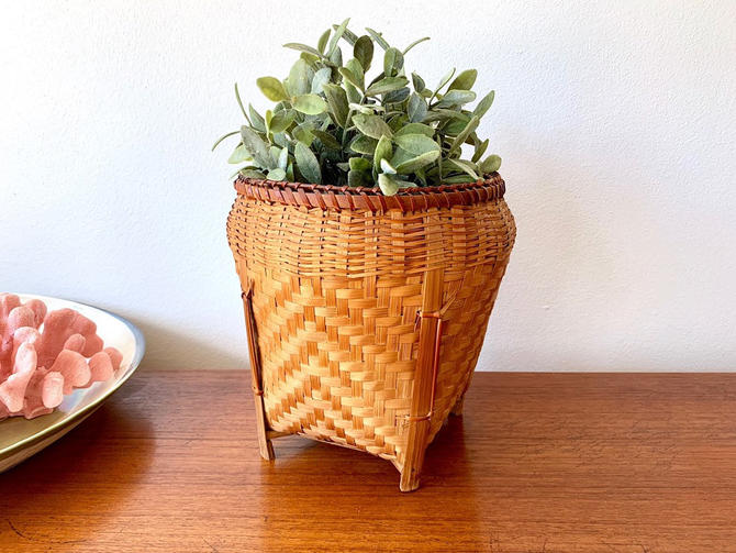 Footed Planter Basket 4 Legged Smaller Bamboo Wicker Planter