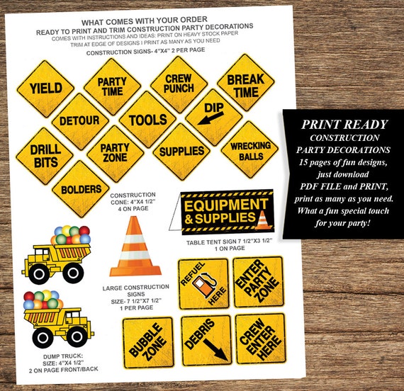Kids Birthday Construction Party Decorations Ready To Print Etsy