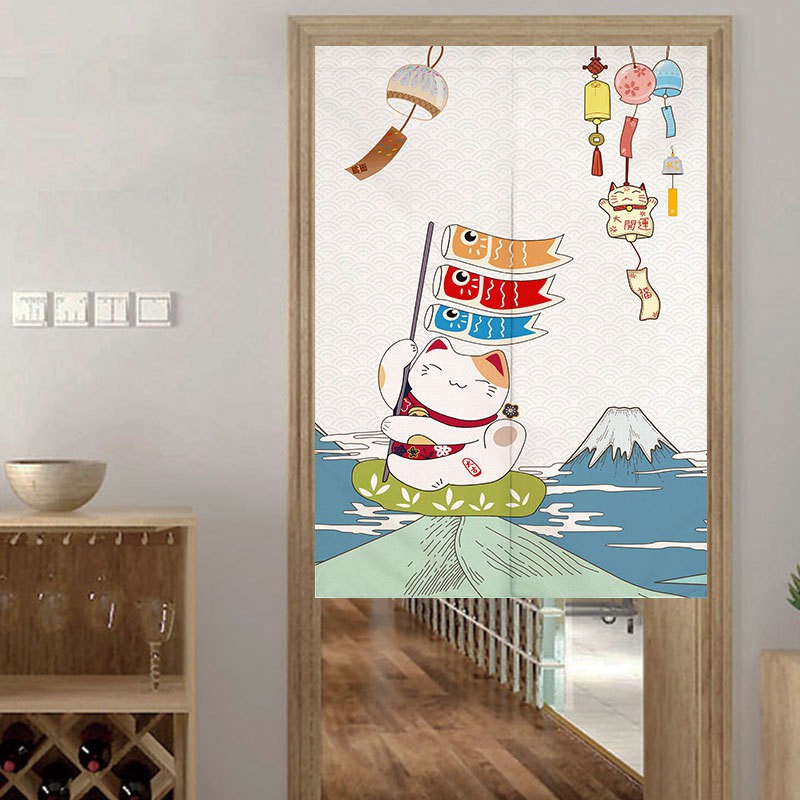 Fortune Cat Door Curtain Printed Kitchen Partition Curtain Cute