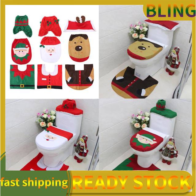 1 Sets 4pcs Xmas Toilet Seat Cover Mat Water Tank Cover Paper