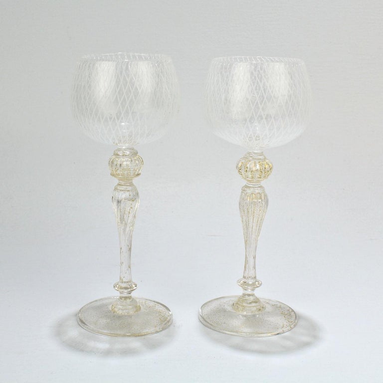 Set Of 10 Venetian Or Murano Glass Reticulo Filigrana Decorated