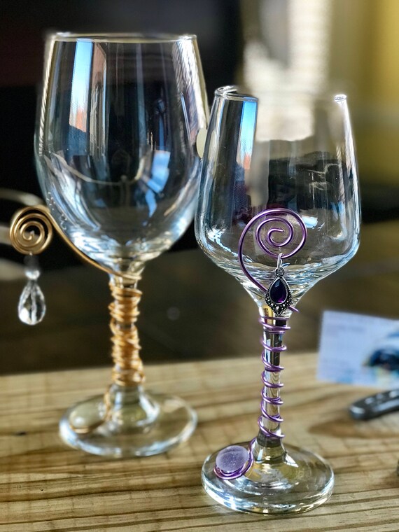 Decorative Wine Glasses With Wire Art Matching Stone And Etsy
