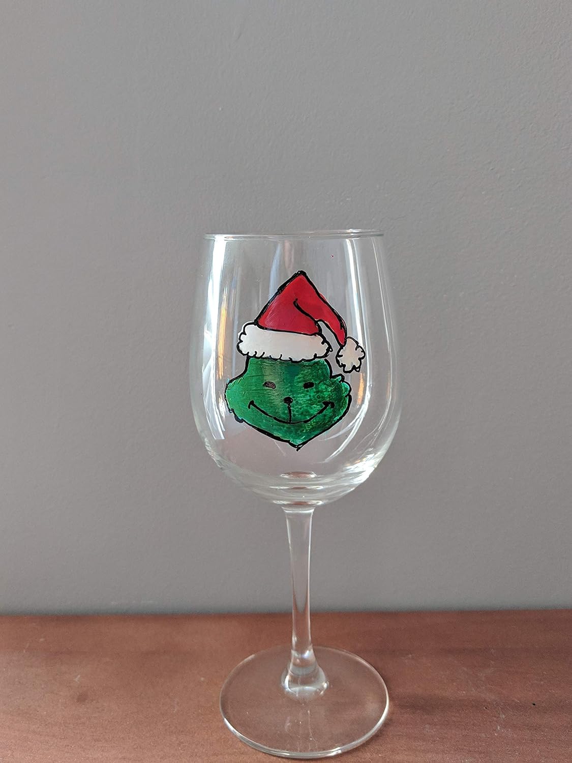 Amazon Com Hand Painted Glass Grinch Red Santa Hat Wine Glass