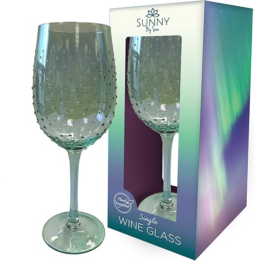 Amazon Com Sunny By Sue Hand Decorated Wine Glass Lustre Green
