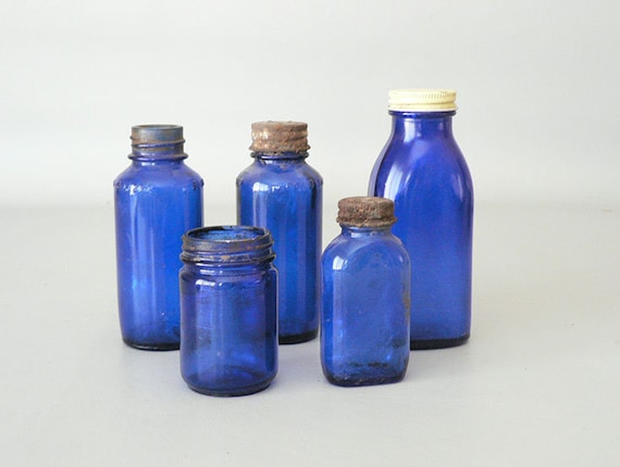 Blue Glass Decorating Bottles Mid Century Apothecary Jars Etsy