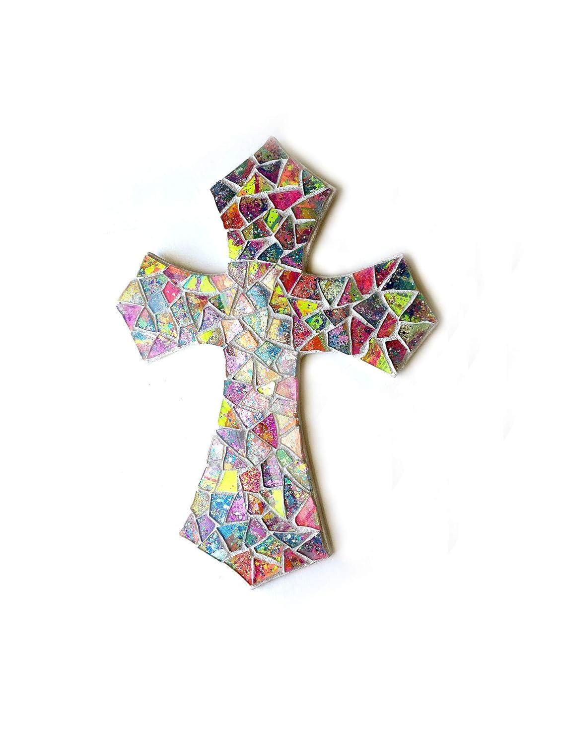 Amazon Com Mosaic Wall Cross Glitter Hand Cut Glass Mosaic