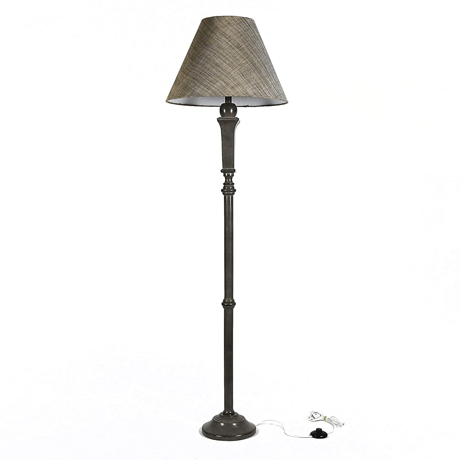 Craftter Textured Khadi Fabric Shade Dark Grey Wooden Base Floor