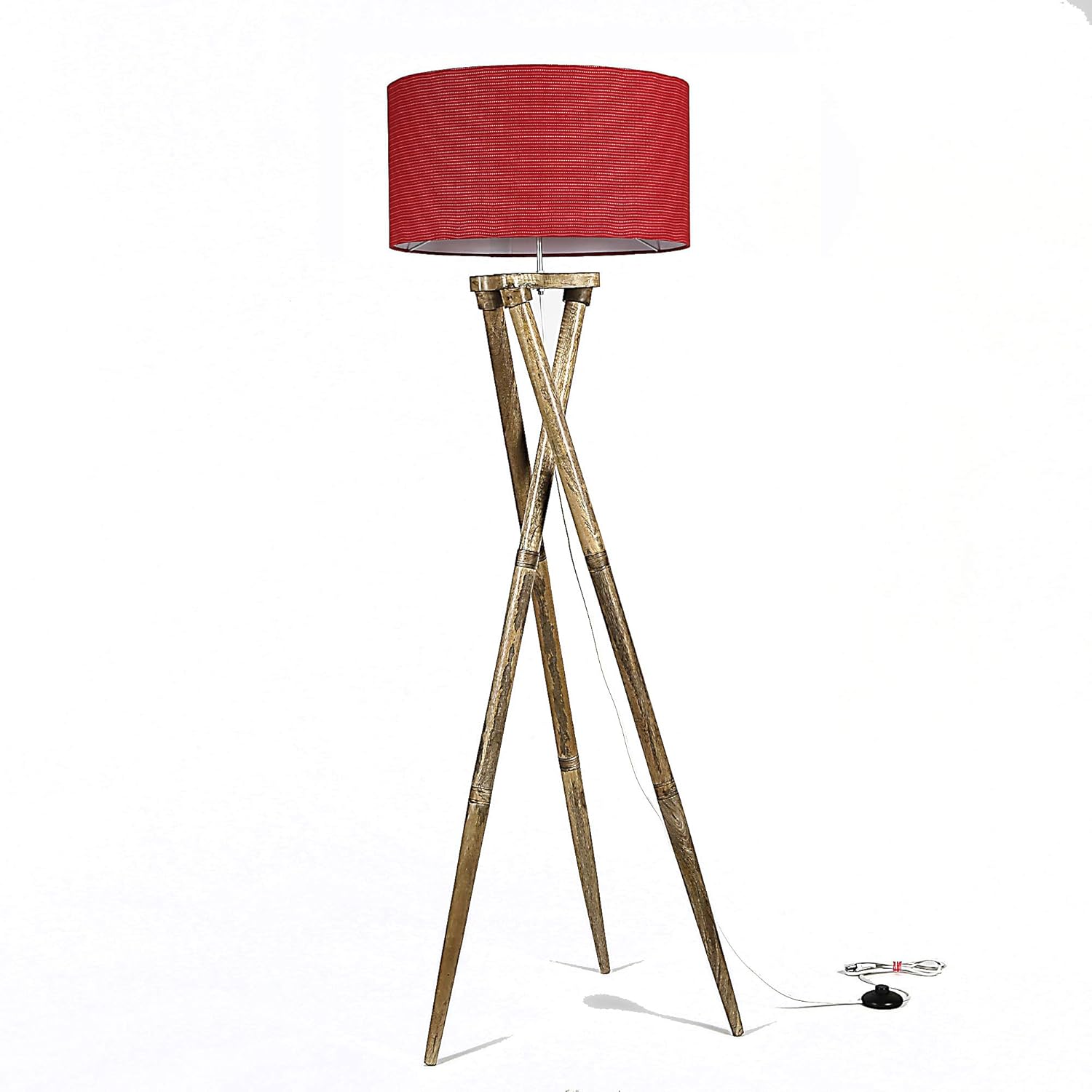 Craftter Red Fabric Shade Wooden Cross Tripod Floor Lamp