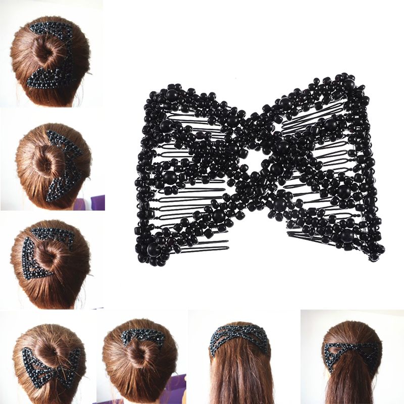 M Mism Women Pearl Beads Elastic Hair Combs Double Slide Magic Bun