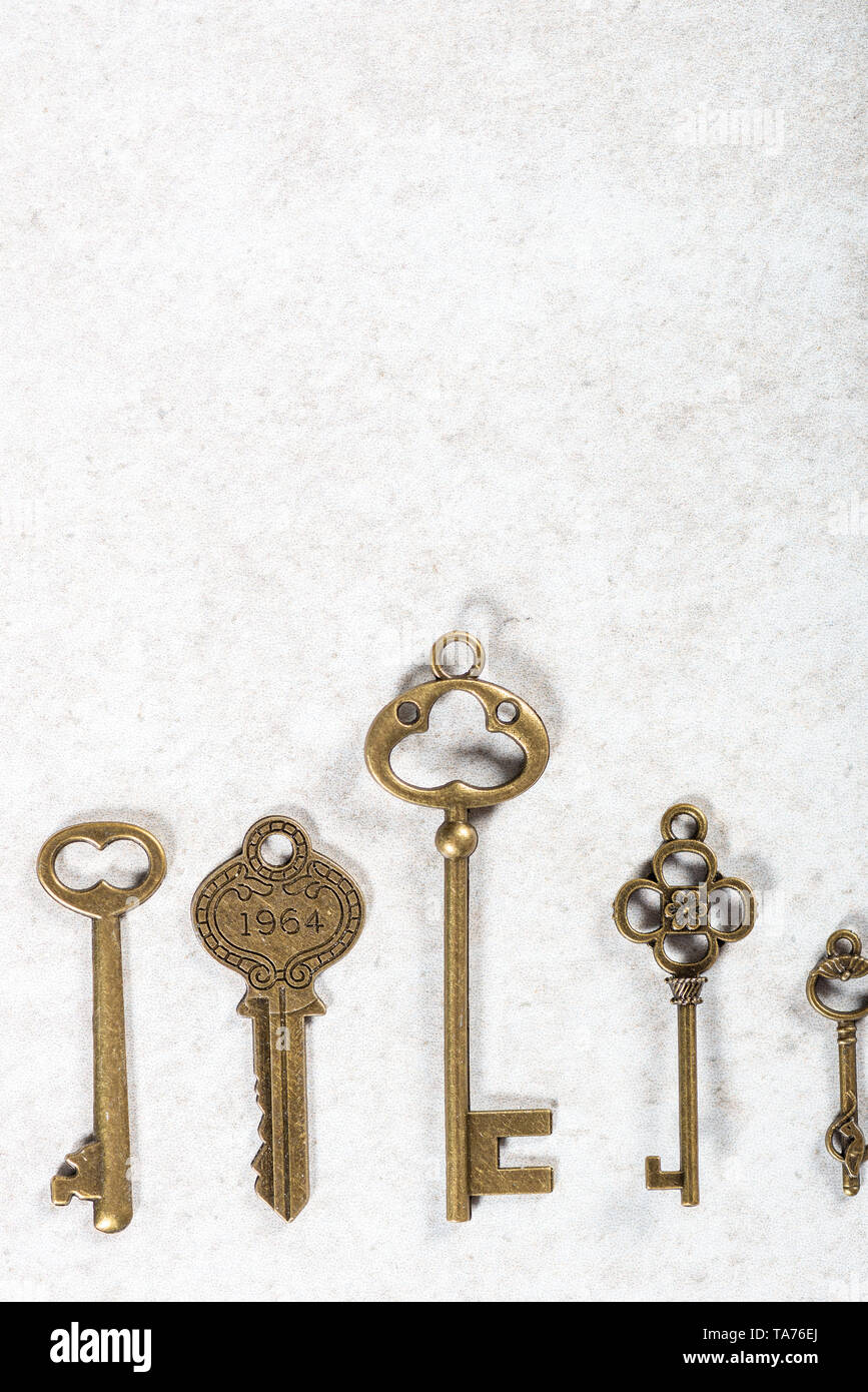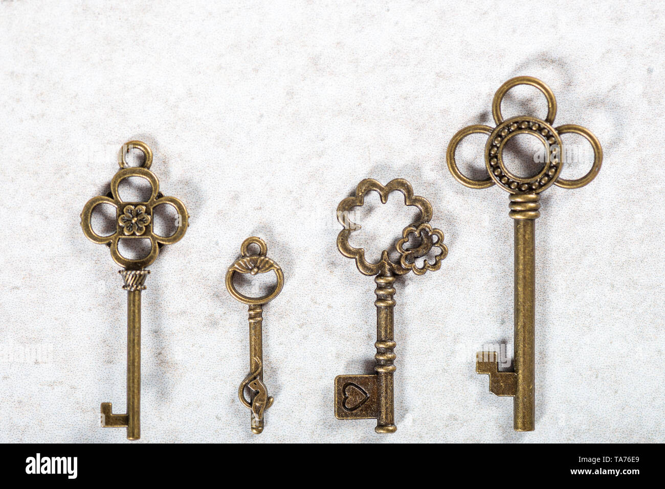 Decorative Keys Of Different Sizes And Styles On Grey Background