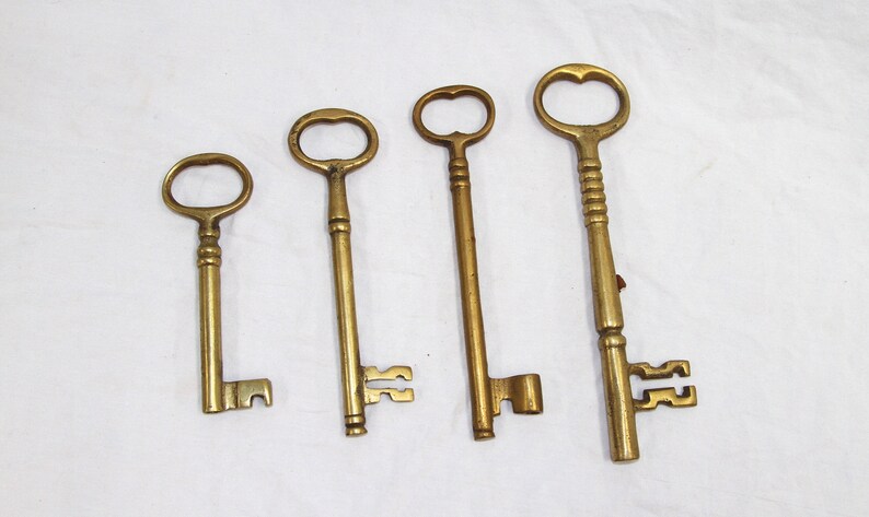 Large Brass Keys Set Of 4 Decorative Keys Made In Korea Etsy