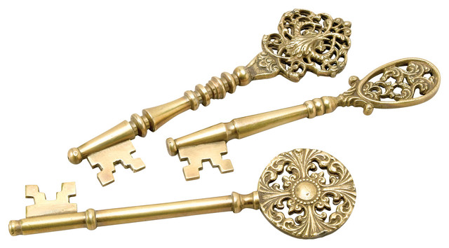Decorative Brass Keys Set Of 3 Traditional Decorative Objects