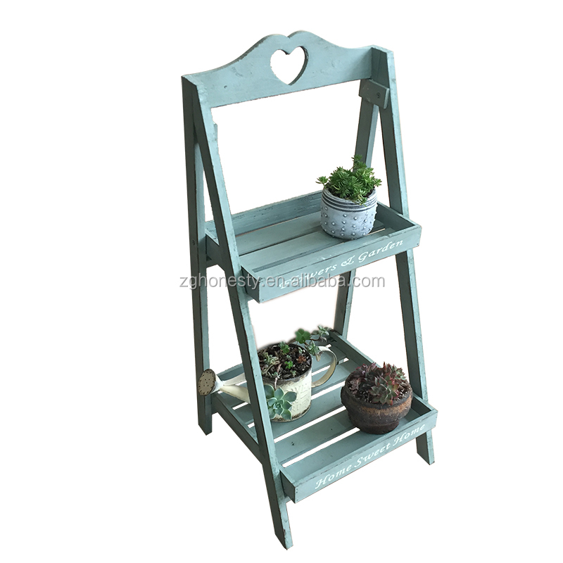 China 3 Tier A Frame Black Decorative Wooden Ladder Shelf China