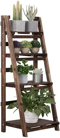 Amazon Com Yaheetech 4 Tier Foldable Wooden Ladder Shelf Plant