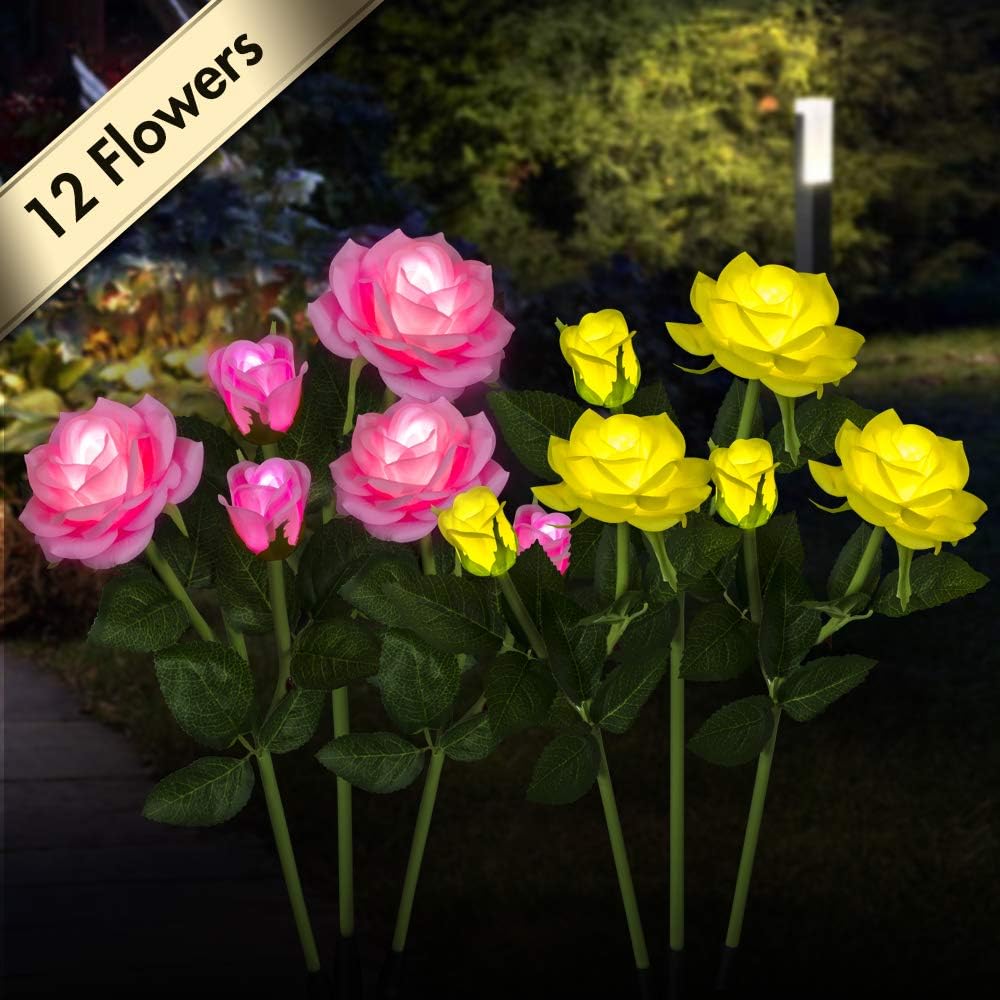 Outdoor Solar Garden Rose Stake Lights Set Of 6 Flower Path