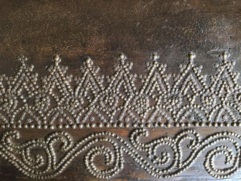 Incredible Very Old Spanish Trunk Encrusted With Brass Decorative