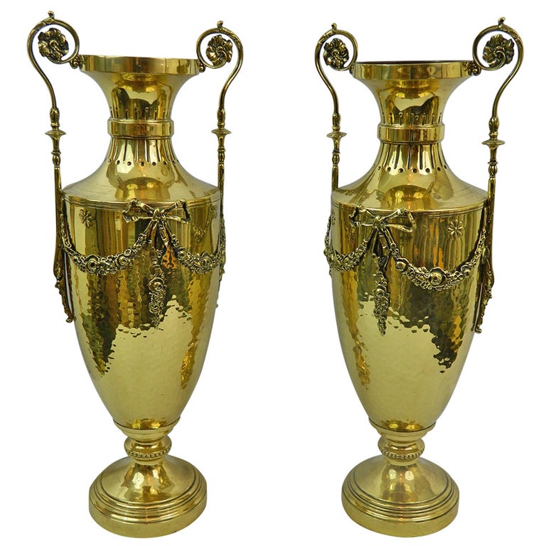 19th Century Pair Of Polished Brass Decorative Urns Or Vases With