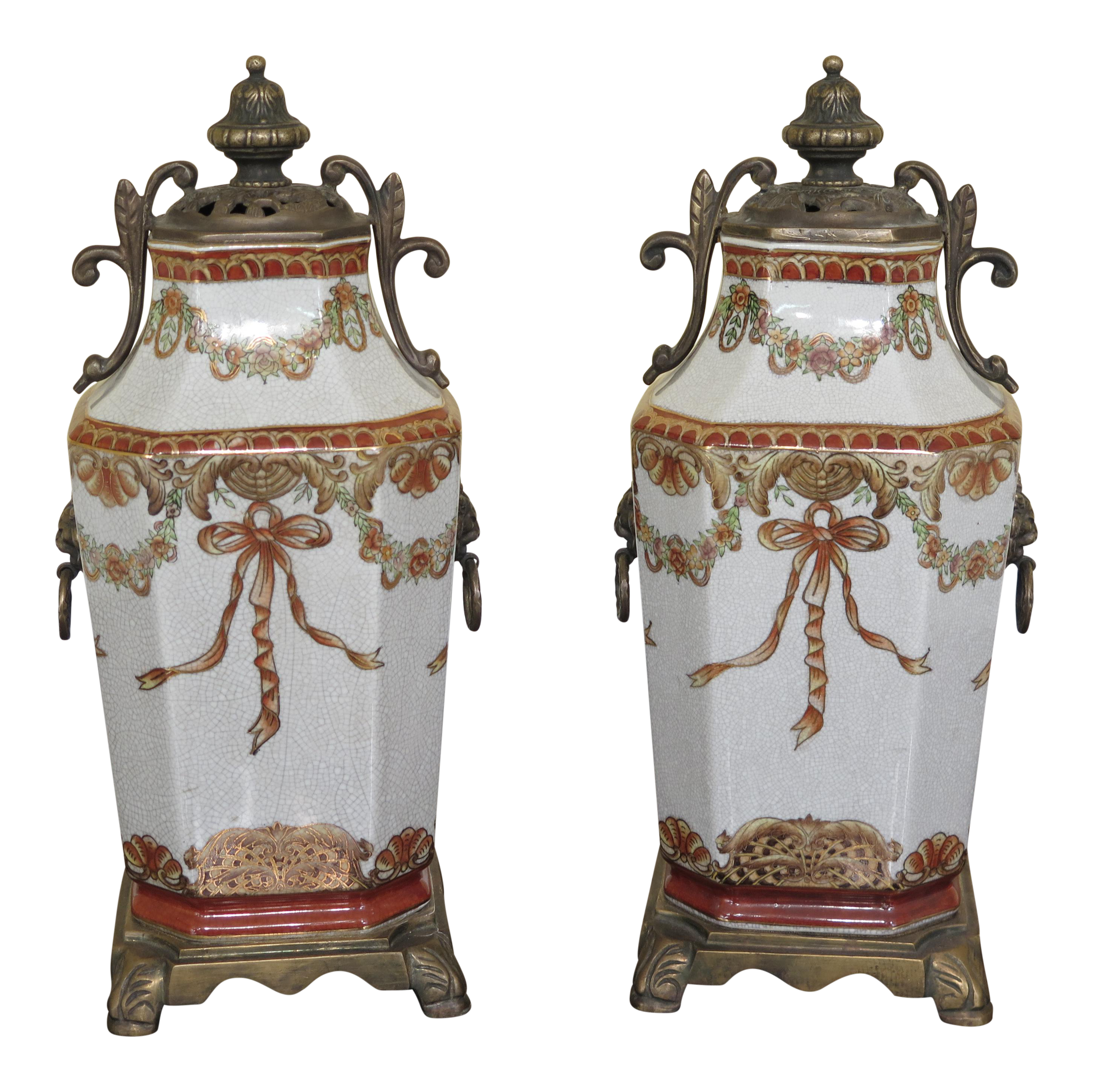 Porcelain Bronze Decorative Urns A Pair Chairish