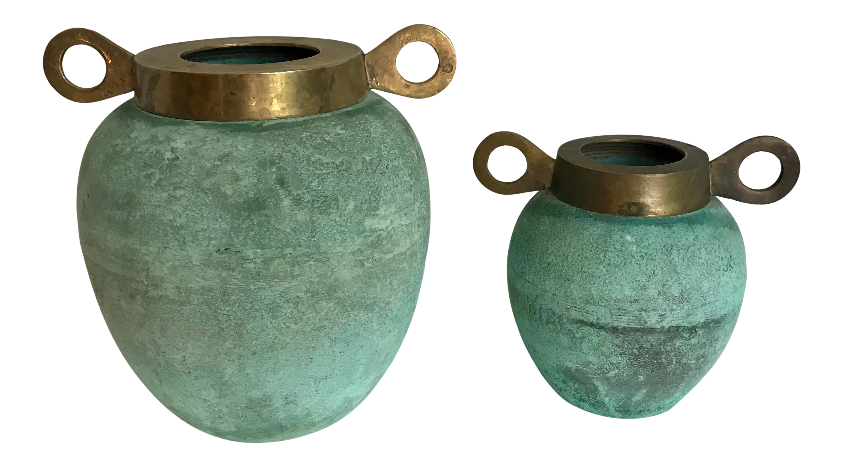 Vintage Patinated Brass Decorative Urns A Pair Chairish