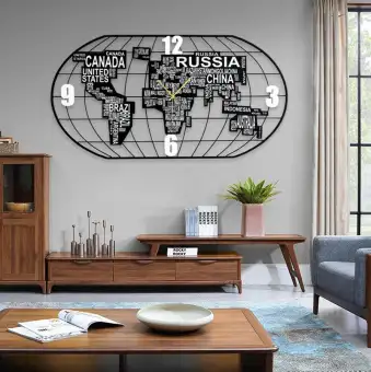 World Map Wall Clock Modern Design Large Wall Watch For Living