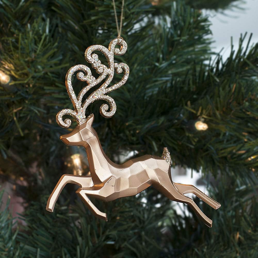 12 Pieces Christmas Ornaments Deer Dark Gold 2 Tones For