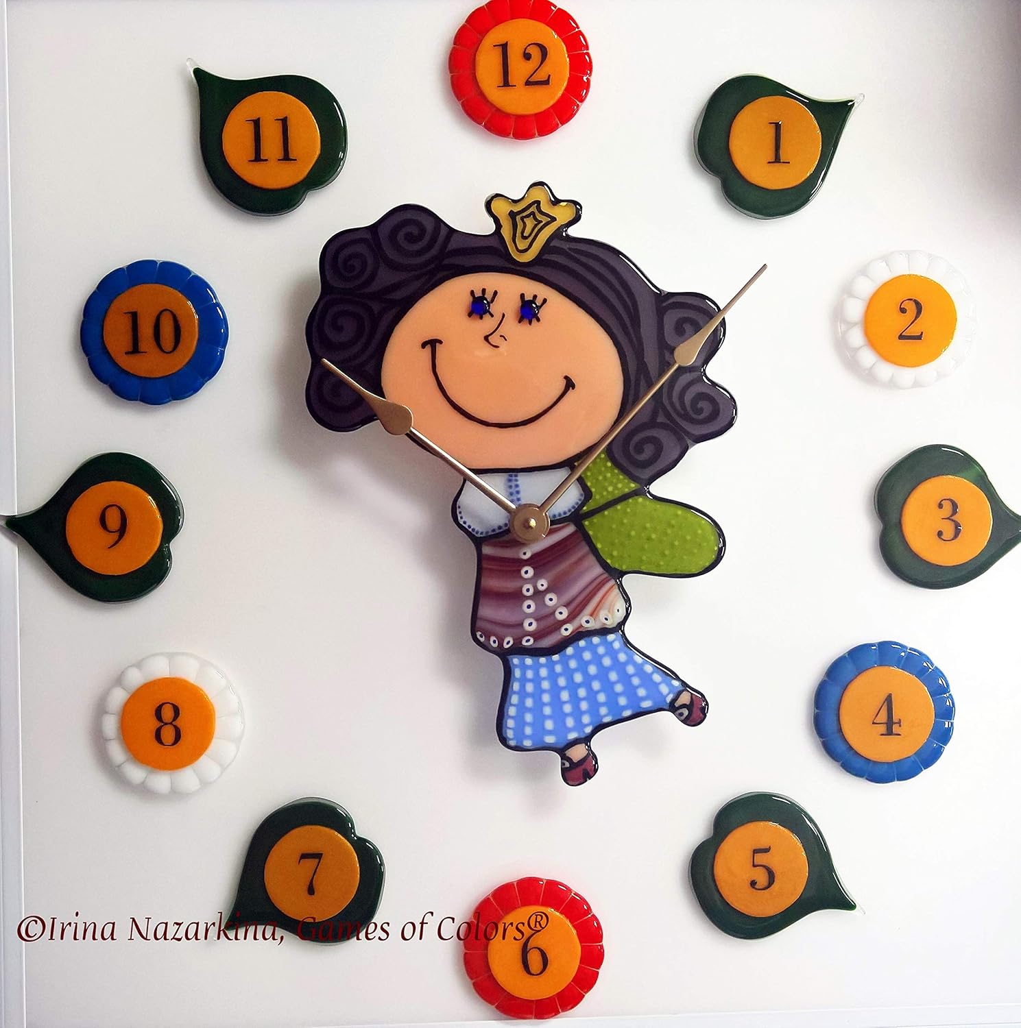 Amazon Com A Decorative Fused Glass Wall Clock For Kids Room Time