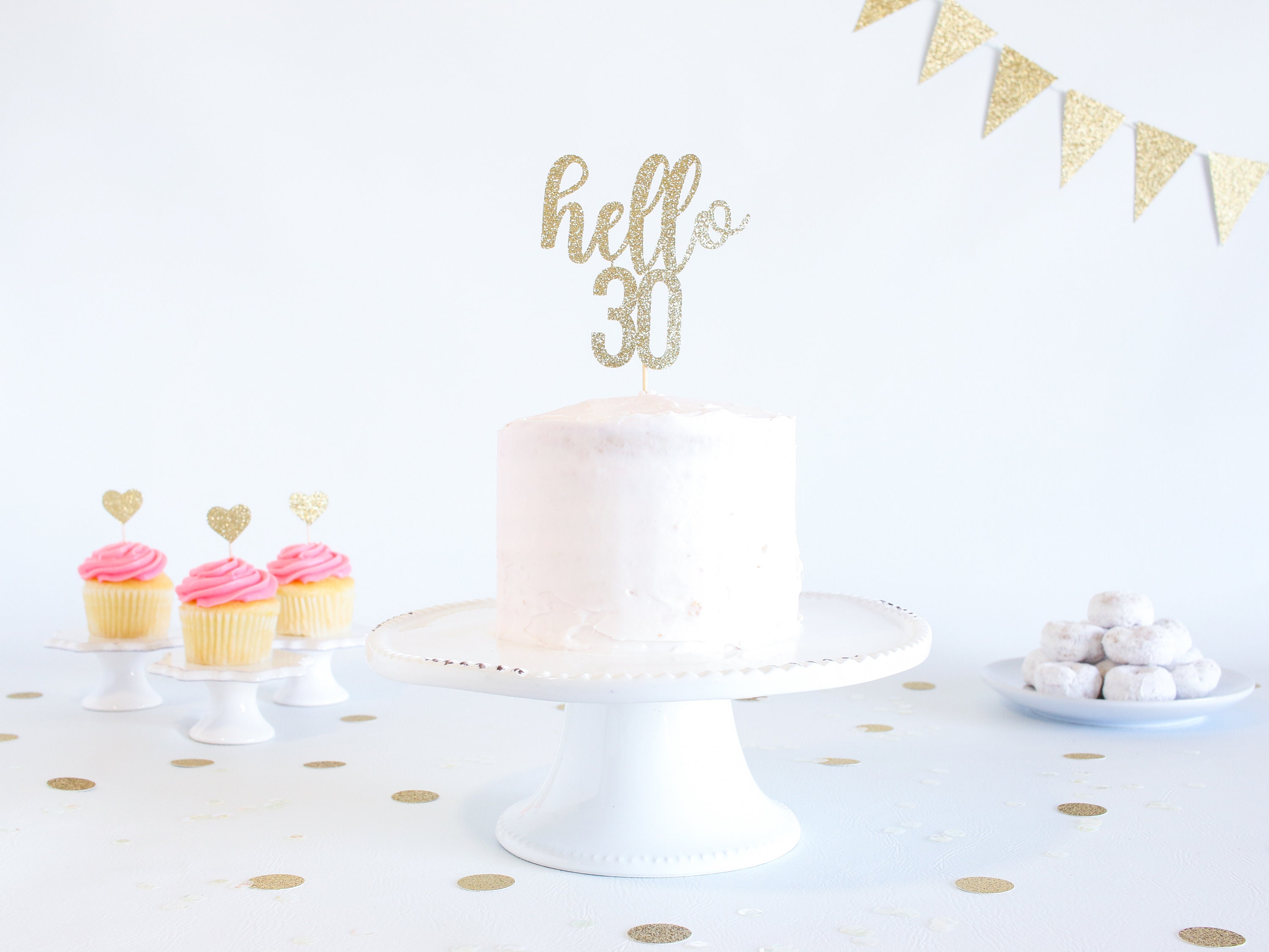 Glitter Cake Topper Hello Thirty Any Number Color 30th Birthday