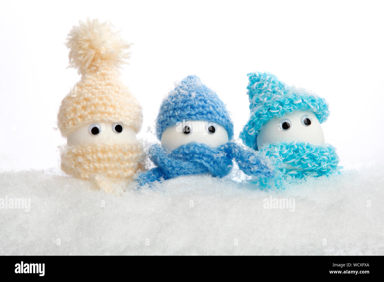 Close Up Of Easter Egg Decorations On Fake Snow Against White