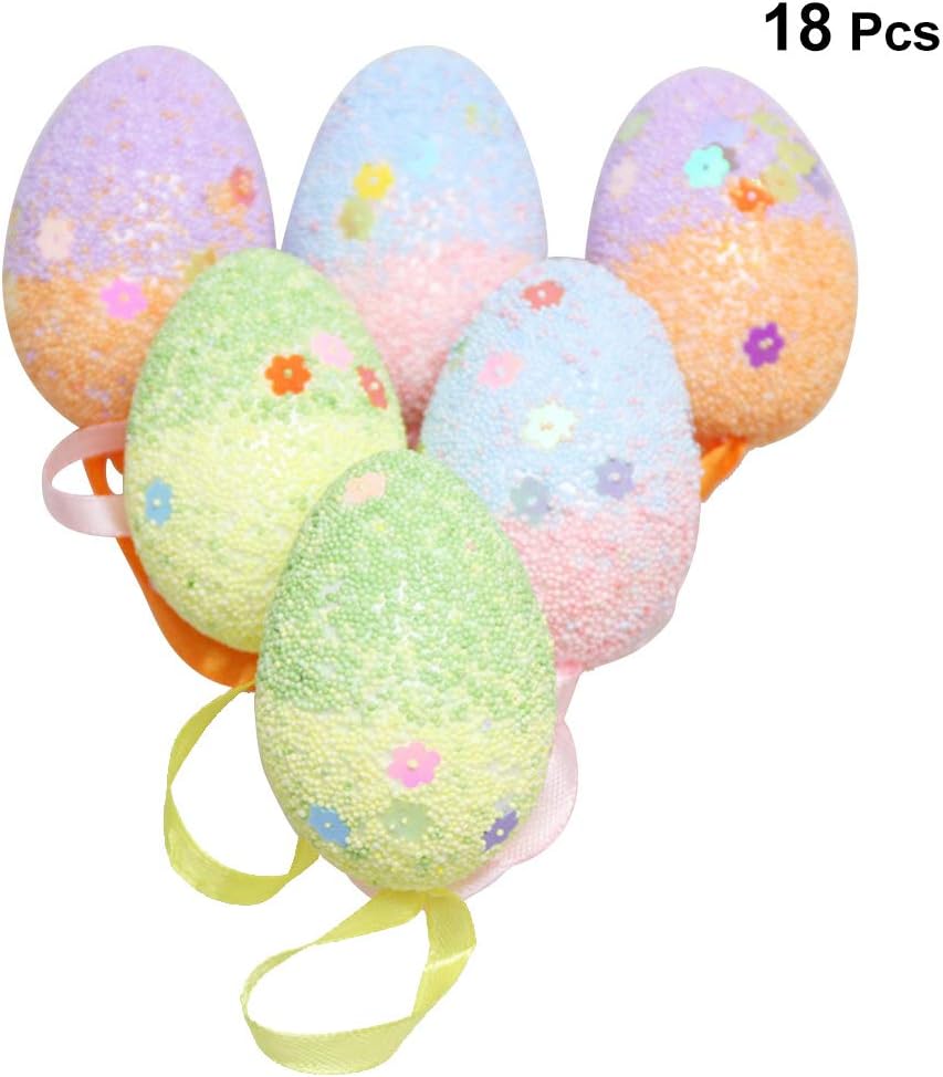 Amazon Com Amosfun 18pcs Decorative Hanging Easter Eggs Foam