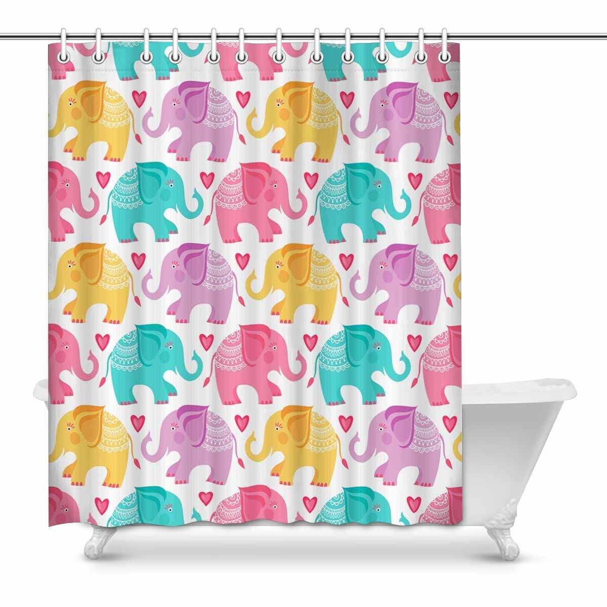 Pop Elephant Bathroom Decor Shower Curtain Set 66x72 Inch