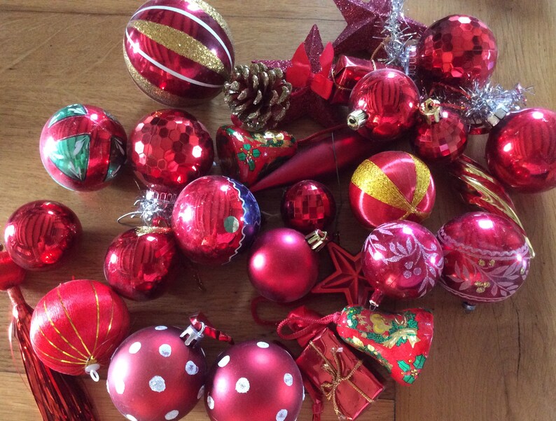 Set Of 28 Vintage French Christmas Decorations In Red And Gold Etsy