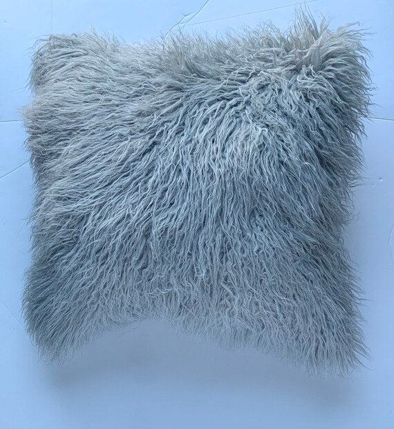Gray Fur Pillow Cover Grey Fur Throw Pillow Cover Mongolian Etsy
