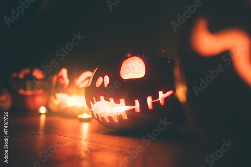 Ghost Pumpkins On Halloween Ead Jack On Dark Background Holiday