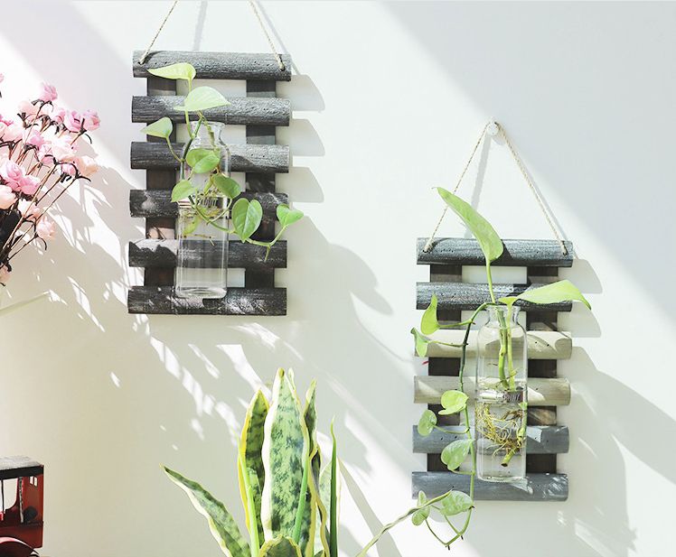 Of 2 Wooden Wall Hanging Decor With A Glass Planter Propagation