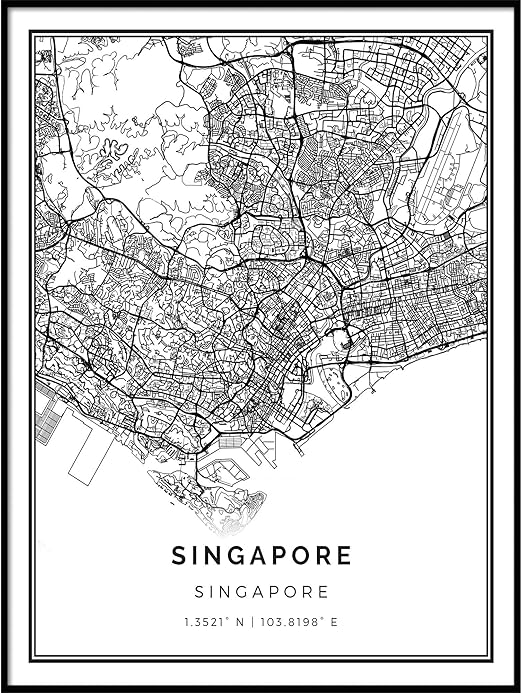 Amazon Com Squareious Singapore Map Poster Print Modern Black