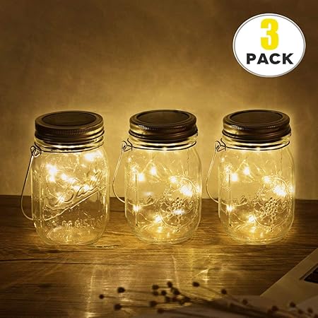 3pack Solar Mason Jar Lights Solar Lantern 20leds Outdoor Glass